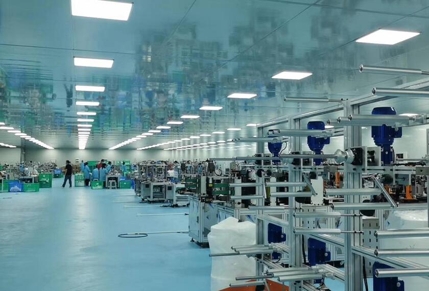 一個標準的口罩廠無塵凈化車間系統(tǒng)構成主要由天花吊頂系統(tǒng)、空調(diào)系統(tǒng)、配電系統(tǒng)、隔墻系統(tǒng)、地板面、配電照明系統(tǒng)這五大部份組成。天花吊頂系統(tǒng)包括綱梁、吊桿、天花板格子梁;空調(diào)系統(tǒng)包括風管、過濾器系統(tǒng)、主機、FFU等;隔墻系統(tǒng)包括門、窗戶等。